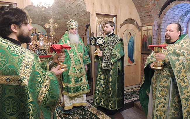 Накануне вечером игумен Адриан с духовенством обители совершили уставную малую вечерню с чтением акафиста преподобному Антонию Дымскому и всенощное бдение.