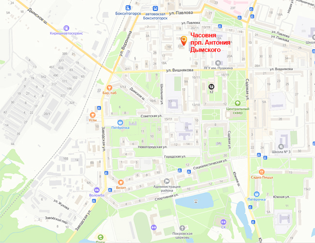 По просьбам православных жителей г. Бокситогорска игумен и братия Антониево-Дымского монастыря благоустраивают часовню, в которой будет находиться икона прп. Антония Дымского с частицей его святых мощей и каждый воскресный день совершаться молебное пение святому. В часовне можно будет оставлять записки о здравии и об упокоении родных и близких.