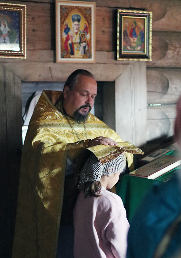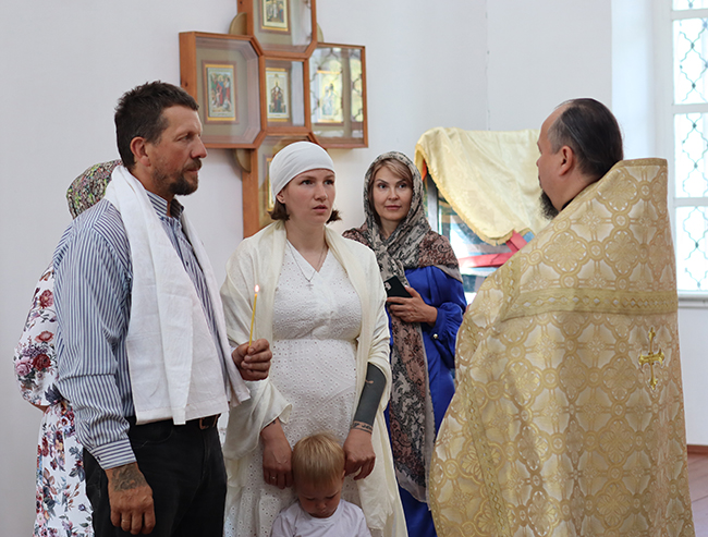 Затем в Троице-Георгиевском храме деревни Озерево было совершени Таинство Крещения детей местных жителей.
