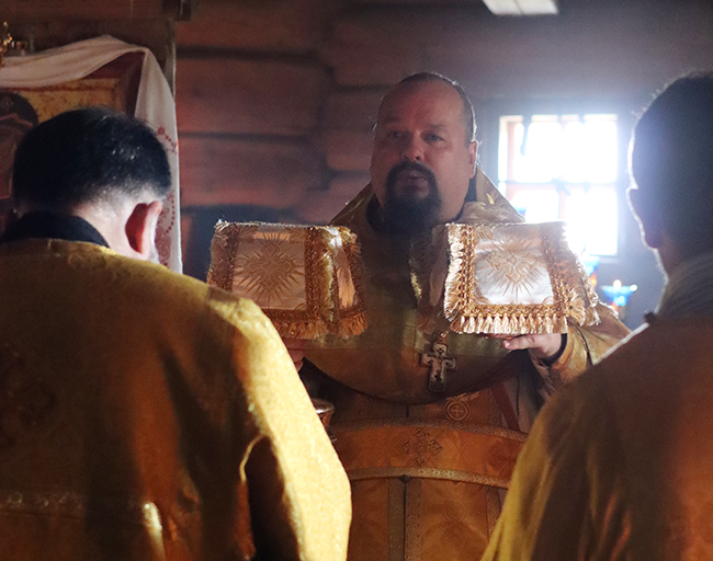В Праздник Рождества святителя Николая Чудотворца игумен Адриан совершил Божественную литургию в Никольском храме деревни Усадище Бокситогорского района, которая располагается на другом берегу реки Чагода, напротив деревни Озерево и Троице-Георгиевского храма.